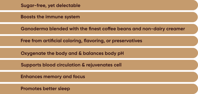 Starting your day with Vitality – Edmark Cafe Power Black. A robust beginning sets the tone for a powerful day, and there’s no better start than indulging in a cup of Edmark Cafe Power Black. Crafted with premium grade coffee beans sourced from South America, the bold and intense flavor of Cafe Power Black serves as the ultimate kickstart for your morning routine. Beyond the well-known perks of coffee, Cafe Power Black also incorporates the advantages of Ganoderma extract.
